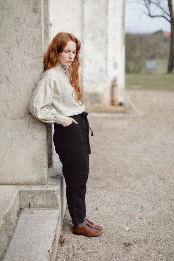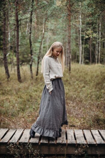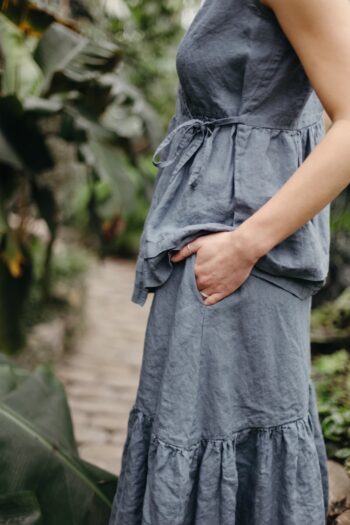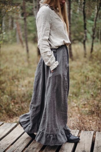 Long, loose silhouette Double-layered in the chest area? Washed and soft medium weight linen (160 g/m²) Optional handmade embroidery Embroidered on the thigh area, on the left side of the dress