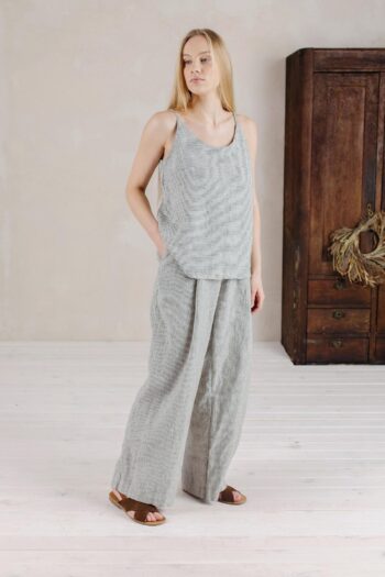 Soft elastic neckline Washed and soft medium weight linen (160 g/m²) Optional handmade embroidery